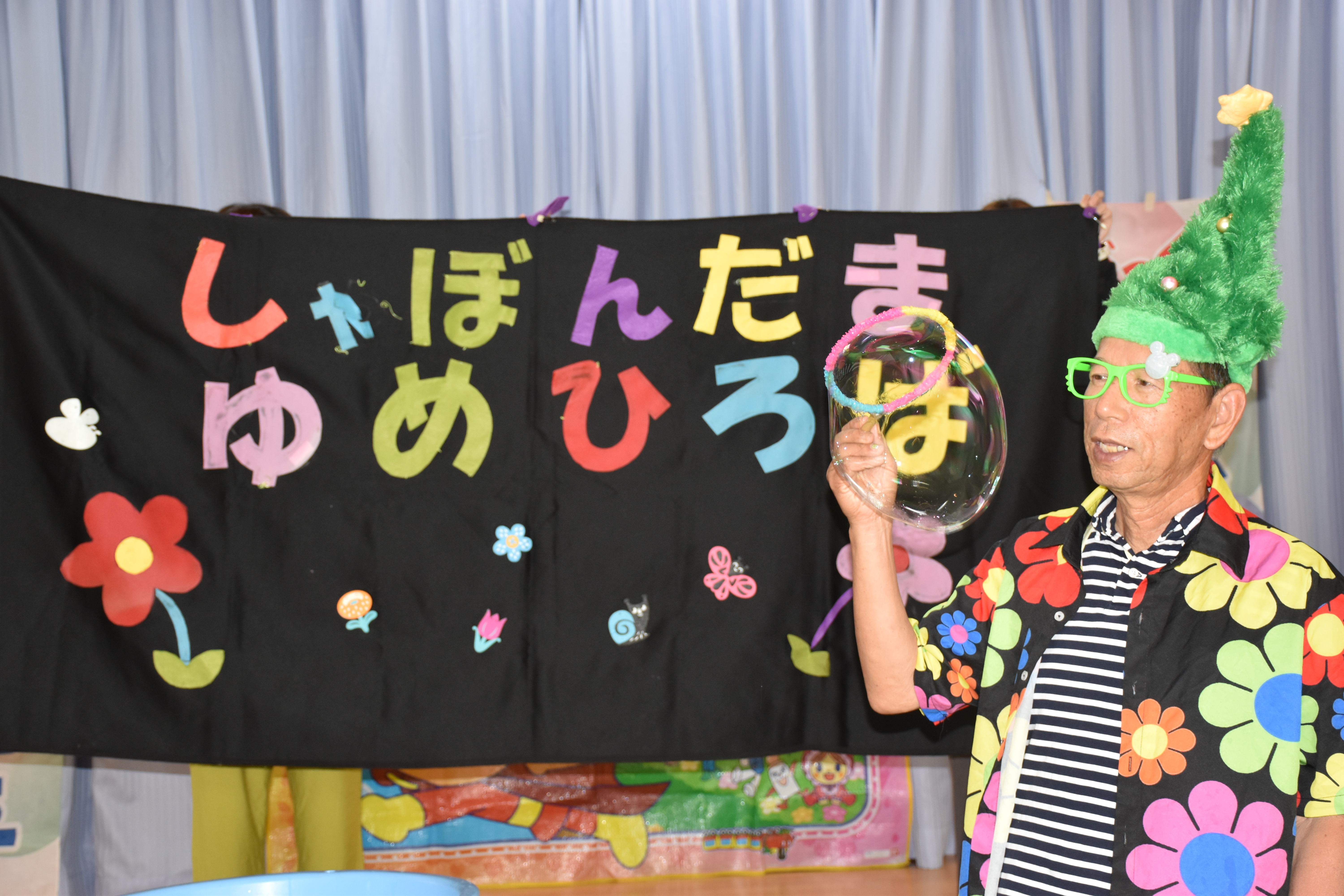 主に幼稚園・保育園などで「シャボン玉ショー、シャボン玉イベント、シャボン玉パフォーマンス」を行っている